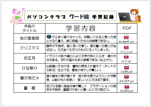 | 2023年3月8日の作品 にゃんこさんの“学習記録表” 使用ソフト:ワード |
