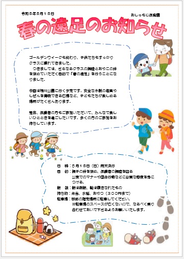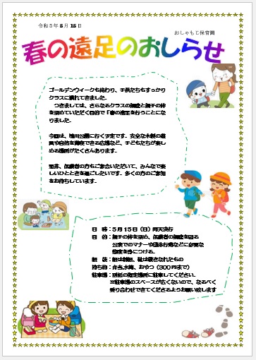 2023年7月19日の作品 はたこさんの“春の遠足” (使用ソフト:ワード) |