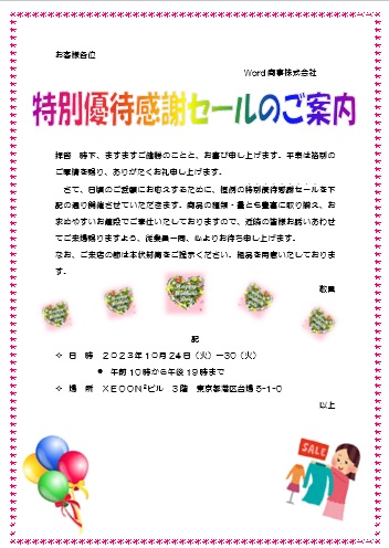 2023年7月14日の作品 のみちゃんの“優待セール” (使用ソフト:ワード) |