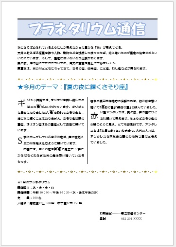 2023年7月14日の作品 海ゆかばさんの“プラネタリウム通信” (使用ソフト:ワード) |