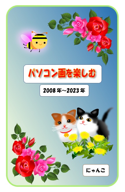| 2023年8月9日の作品 にゃんこさんの“パソコン画の表紙” (使用ソフト:ワード) 自宅での自主学習です。 |