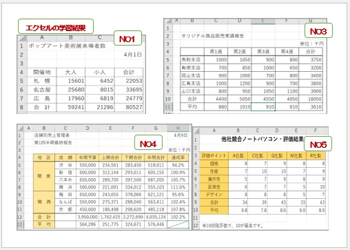 | しんちゃんの“エクセルの学習結果表-2” NO6〜NO8 (使用ソフト:エクセルとワード) |