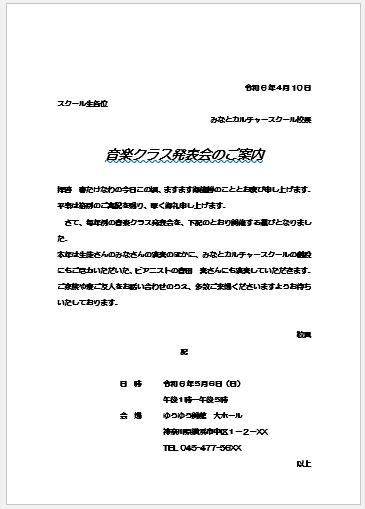 | 2024年2月28日の作品 はたこさんの“発表会のご案内” (使用ソフト:ワード) |