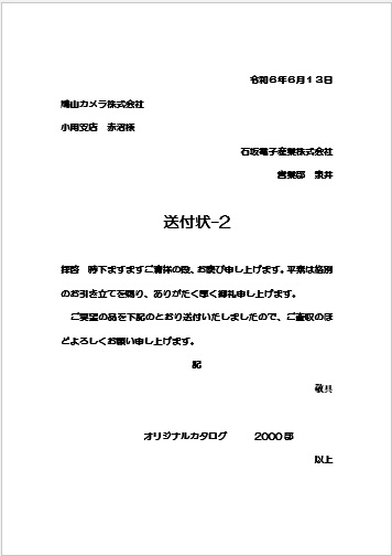 2024年2月28日の作品 はたこさんの“送付状-2” (使用ソフト:ワード) |