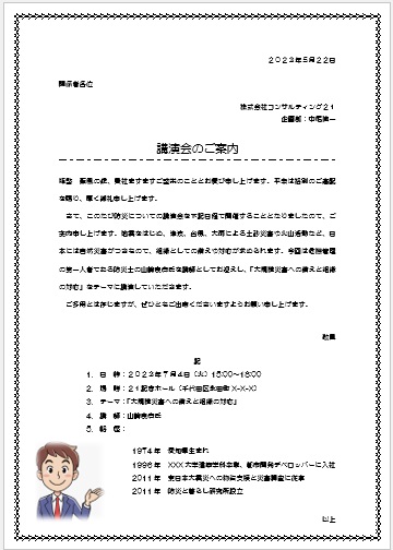 2024年2月28日の作品 みさちゃんの“講演会のご案内” (使用ソフト:ワード) |