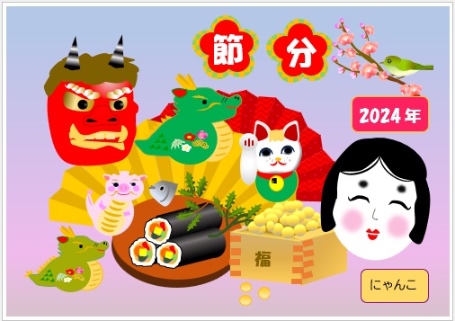 | 2024年1月17日の作品 にゃんこさんの“節分” (使用ソフト:ワード) |