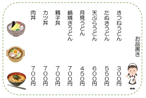 2024年2月9日の作品 ぷりんちゃんの“メニュー” (使用ソフト:エクセル) |