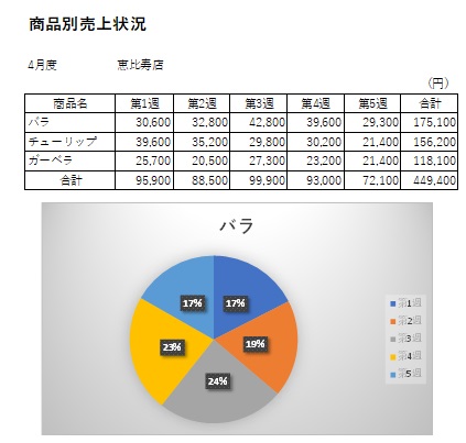 | 2024年2月28日の作品 しんちゃんの“バラの売上状況の円グラフ” (使用ソフト:エクセル) |
