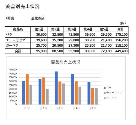 2024年2月28日の作品 しんちゃんの“商品別売上の棒グラフ” (使用ソフト:エクセル) |