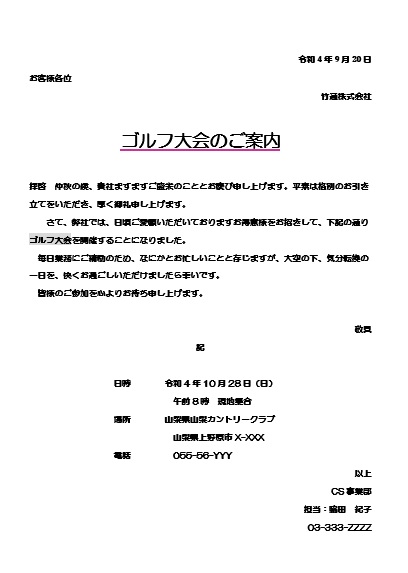 2024年3月8日の作品 はたこさんの“ゴルフ大会” (使用ソフト:ワード) |