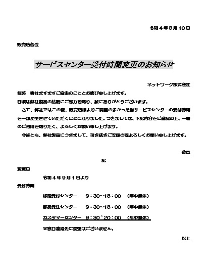 | 2024年3月8日の作品 はたこさんの“受付時間変更” (使用ソフト:ワード) |