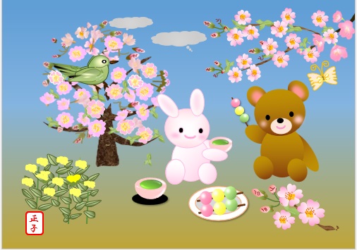 | 2024年3月8日の作品 のみちゃんの“お花見” (使用ソフト:ワード) |