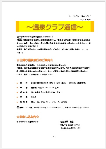 2024年5月22日の作品 ひでちゃんの“温泉クラブ通信-1” (使用ソフト:ワード) |