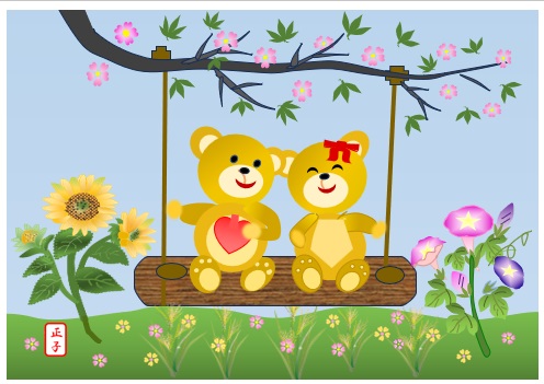 2024年6月12日の作品 まこさんの“仲良しブランコ” (使用ソフト:ワード) 6/12の課題の続きを家で仕上げて6/17にメールで送ってくれました。 |
