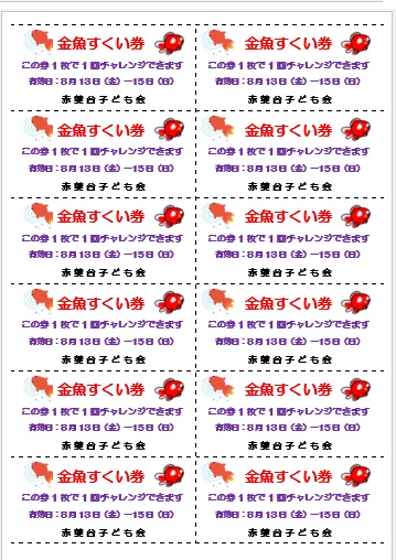 2024年6月21日の作品 のみちゃんの“金魚すくい券” (使用ソフト:ワード) |