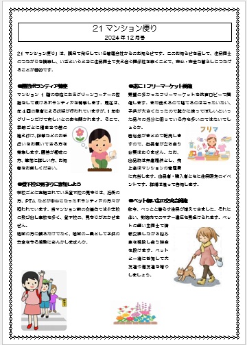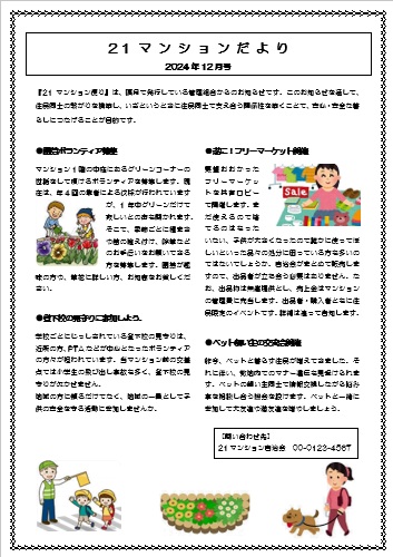 | 2025年3月21日の作品 みさちゃんの“マンションだより” (使用ソフト:ワード) |