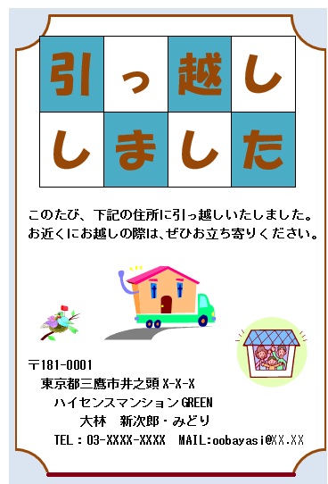 2025年3月21日の作品 みさちゃんの“引っ越しはがき” (使用ソフト:ワード) |
