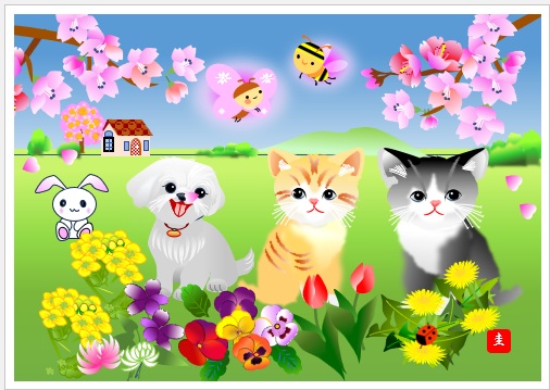2025年3月17日の作品 にゃんこさんの“猫たちの春” (使用ソフト:ワード) メールで届きました。自主学習です。 |