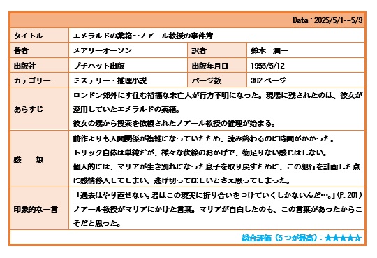 2025年3月21日の作品 ぷりんちゃんの“読書カード” (使用ソフト:ワード) |