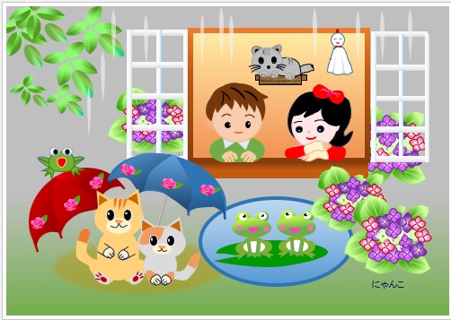 | 2025年5月16日の作品 にゃんこさんの“梅雨と猫” (使用ソフト:ワード) |
