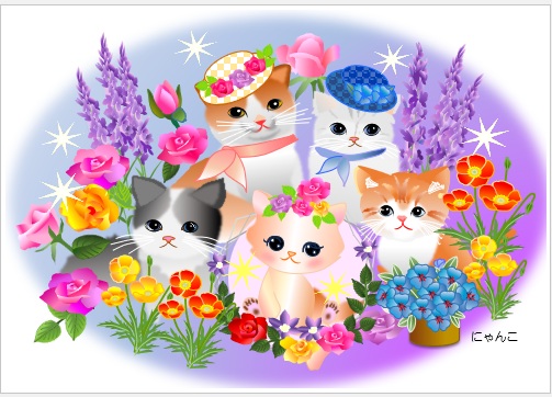 2025年6月13日の作品 にゃんこさんの“猫と花” (使用ソフト:ワード) 家で自主的に描いた作品です |