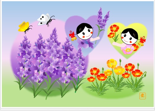 | 2025年6月11日の作品 のみちゃんの“花畑” (使用ソフト:ワード) 家で自主的に描いた作品です |