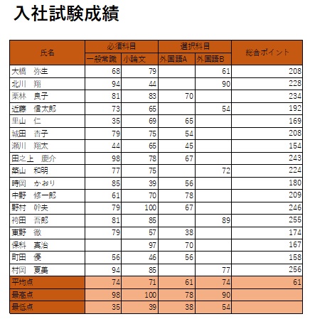 | 2025年7月11日の作品 なかちゃんの“入社試験成績” (使用ソフト:エクセル) |