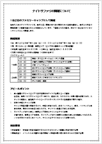 2025年7月11日の作品 にゃんこさんの“ナイトサファリ開催” (使用ソフト:ワード) |
