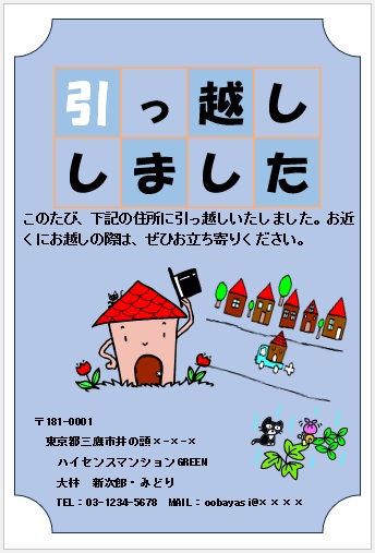 | 2025年7月11日の作品 ぷりんちゃんの“引っ越しはがき” (使用ソフト:ワード) |
