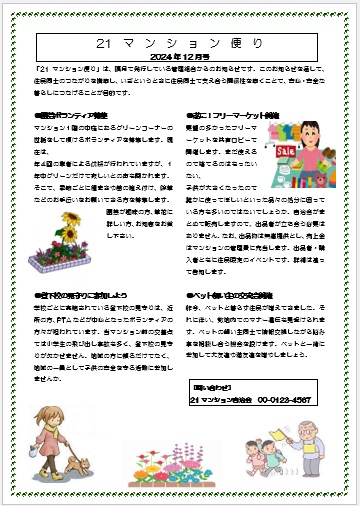 2月13日の作品 ぷりんちゃんの“マンション便り” (使用ソフト:ワード) |