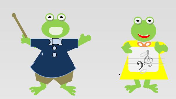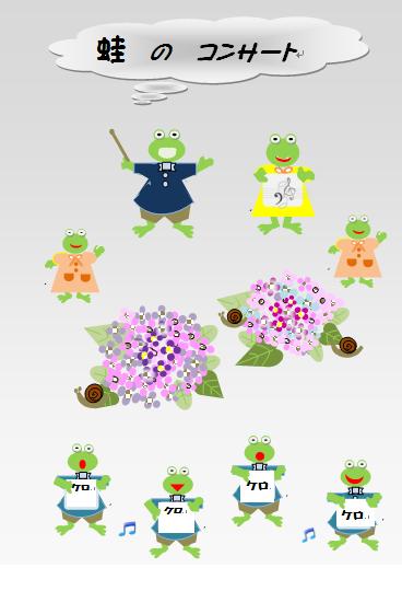 蛙のケロケロいう声が聞こえてきそうですね。水色の音符の絵も効果的ですよね。楽しそうなコンサート…。こんな季節ももう間近ですね。 |