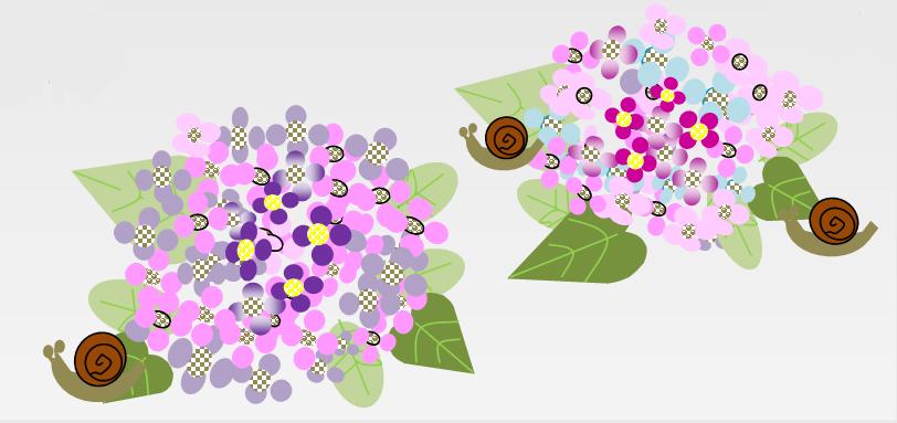 「蛙のコンサート」という作品があまりにも細かく良く出来ているので、紫陽花とかたつむりだけを拡大してみました。